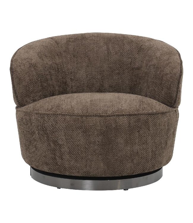Comfortabele draaifauteuil in warme donkerbruine stof, met afgeronde vorm en stevige zit. Lees meer.