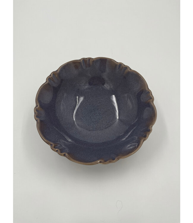 Deze compacte kom uit de Moove-serie van Gresnovo valt op door zijn diepe, donkergrijze kleur Gris D’orage. De golvende rand en het handgemaakte karakter geven de kom een stoere, authentieke uitstraling – elk exemplaar is uniek.