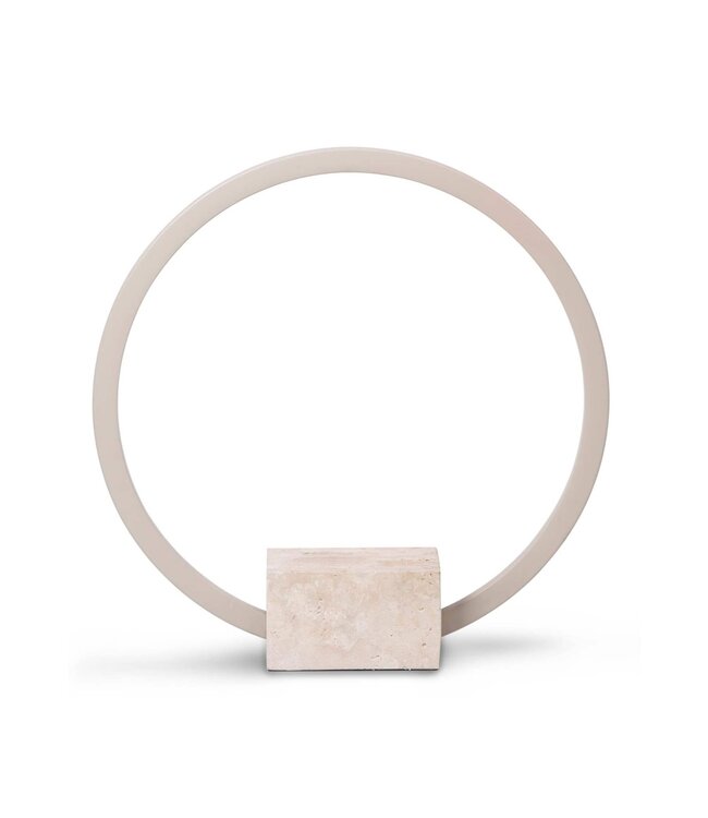 Luxe ornament 'Kalmar' van Bombyxx in maat L is een prachtig decoratie-item voor in je woonkamer. De voet, gemaakt van travertine, draagt de luxe zandkleurige ring van aluminium. Een echte eyecatcher! Lees meer.