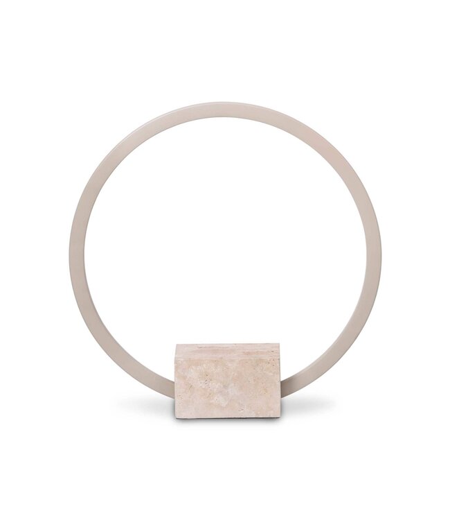 Luxe ornament 'Kalmar' van Bombyxx in maat S is een prachtig decoratie-item voor in je woonkamer. De voet, gemaakt van travertine, draagt de luxe zandkleurige ring van aluminium. Een echte eyecatcher!