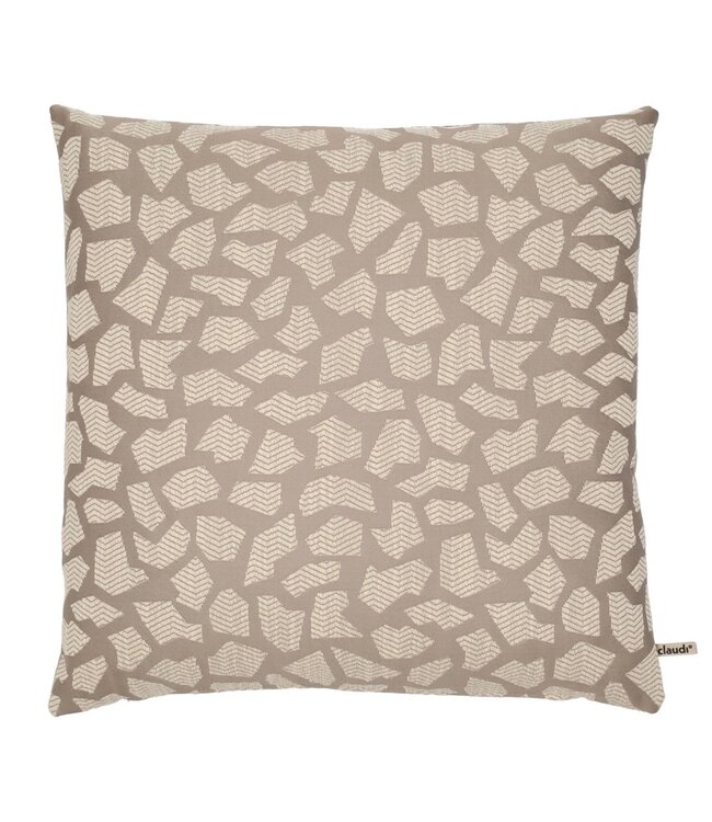 Deze poef is uitgevoerd in exact dezelfde stof als het afgebeelde Claudi kussen. Zo zie je goed de kleur en structuur.