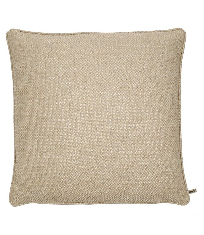 Deze poef is uitgevoerd in exact dezelfde stof als het afgebeelde Claudi kussen. Zo zie je goed de kleur en structuur.