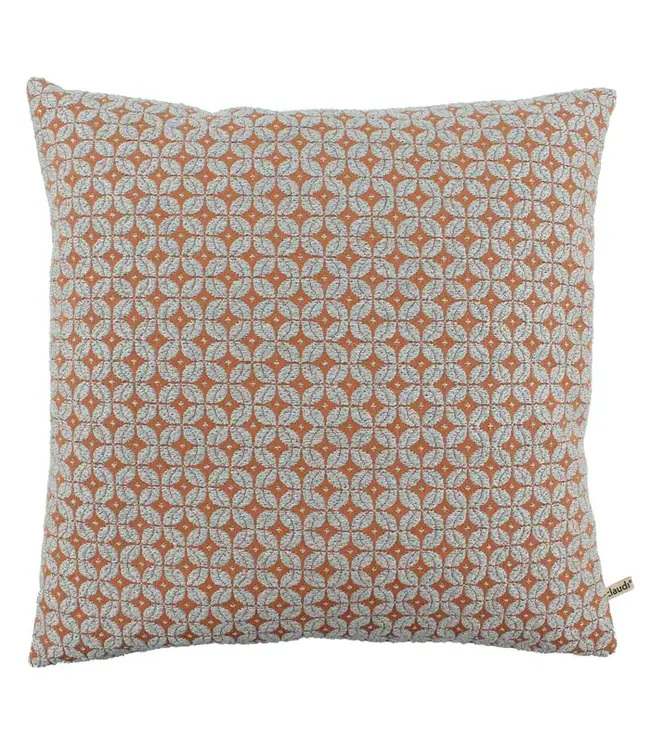 Deze poef is uitgevoerd in exact dezelfde stof als het afgebeelde Claudi kussen. Zo zie je goed de kleur en structuur.