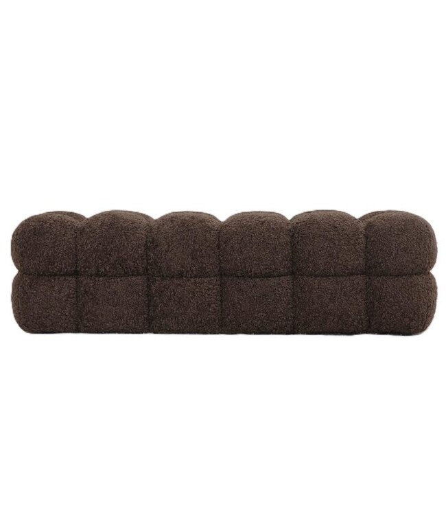 Zacht teddy bankje in koffiekleur van PTMD. Een sfeervolle zitplek voor in de hal, slaapkamer of woonkamer. Afmetingen: 160x45x43 cm. Warm, stijlvol en comfortabel. Lees meer.